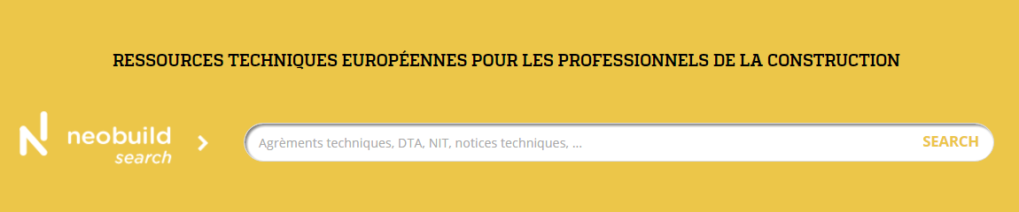 Accédez à des milliers de ressources techniques européennes indispensables à notre secteur : Agréments techniques, notices techniques, ATG, ATE, normes, règlementations, évènements, actualités,…Testez le et découvrez ce service innovant sur www.neobuild.lu